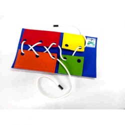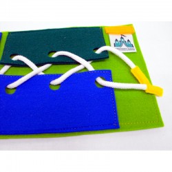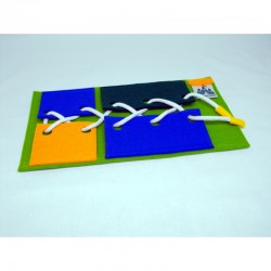 Tablica manipulacyjna „Oczka i sznurki” służy do usprawniania i ćwiczeń motoryki małej. Dzięki tej planszy dziecko ćwiczy przeplatanie, przeciąganie i sznurowanie. Całość wykonana jest z bardzo dobrej jakości różnokolorowego filcu.